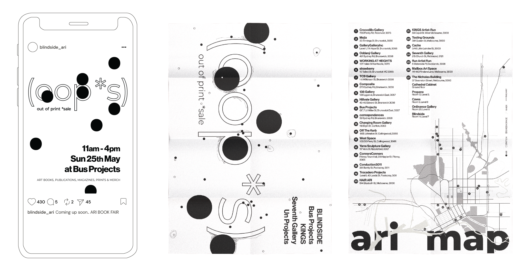 A key deliverable was a black-and-white, poster-sized Naarm ARI Map, designed as both a collectible takeaway and a tool to encourage exploration of independent art spaces.